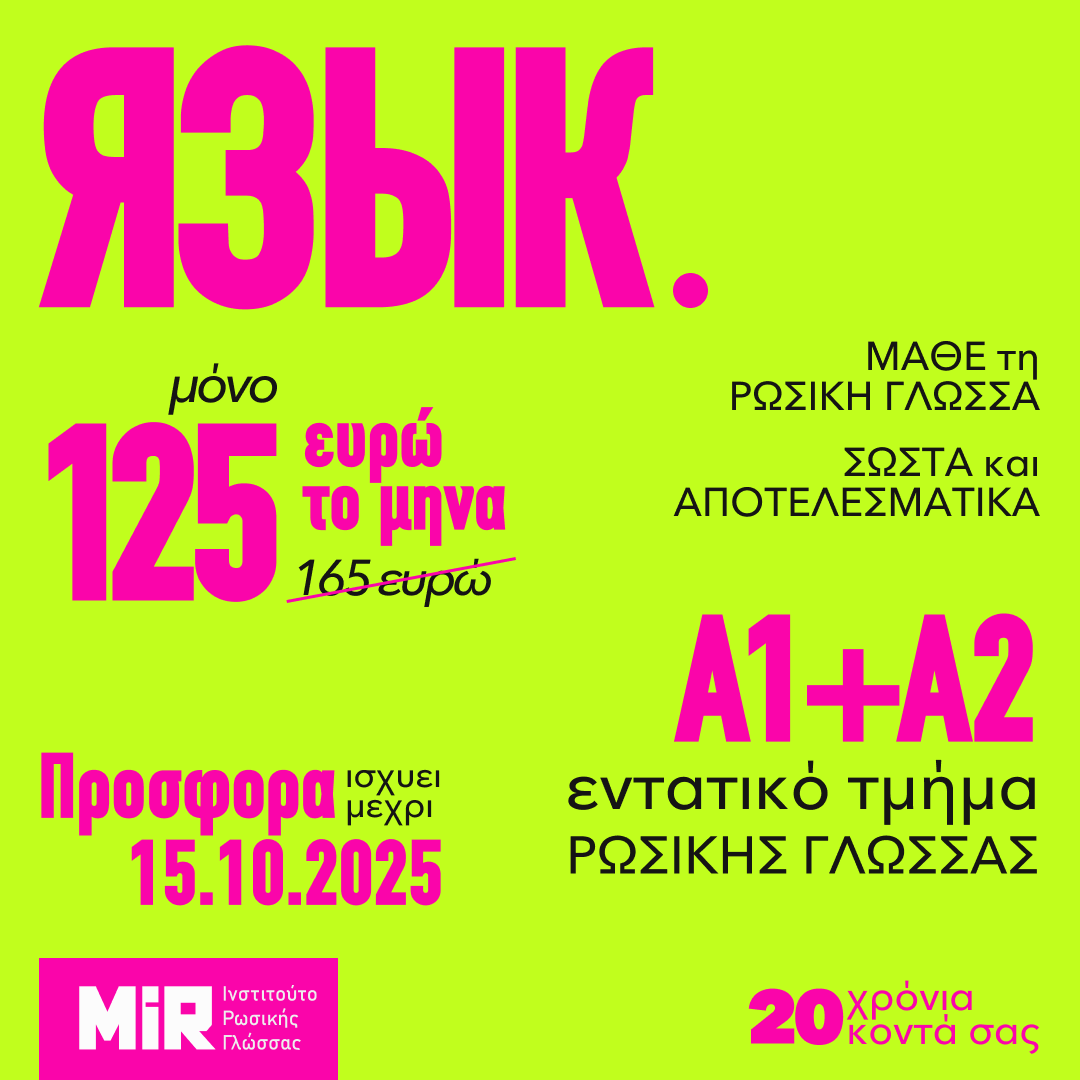 MiR? Προσιτές τιμές για όλα τα πορτοφόλια, κεντρικός σταθμός στην πόλη, φιλικό περιβάλλον, άψογη οργάνωση μαθημάτων κα διαδραστικά μέσα εκμάθησης ρωσικής γλώσσας!